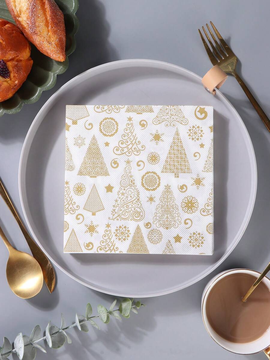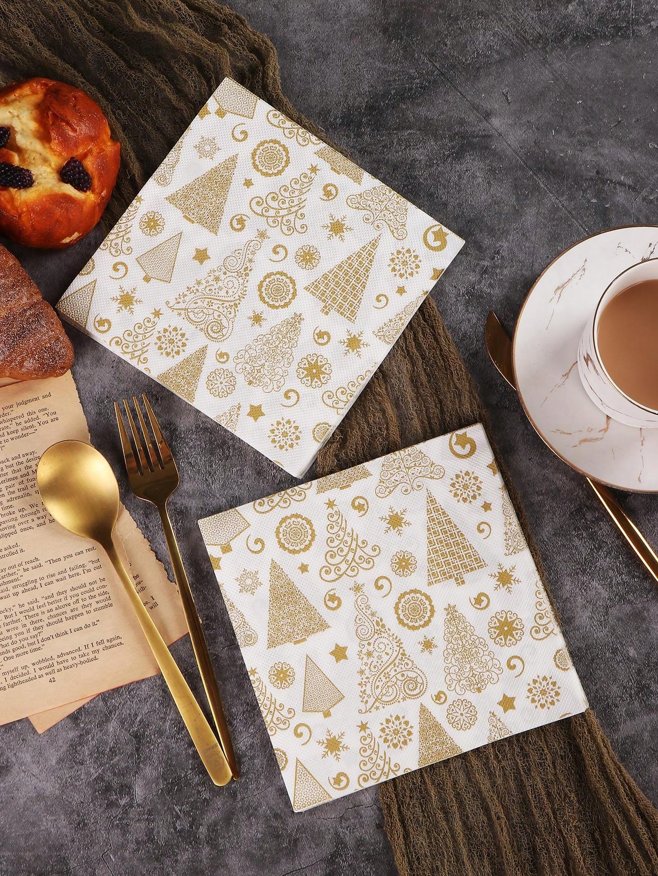 Christmas Series Disposable Napkins (set Of 20) With Colorful Printed Christmas Tree Pattern For Party Supplies