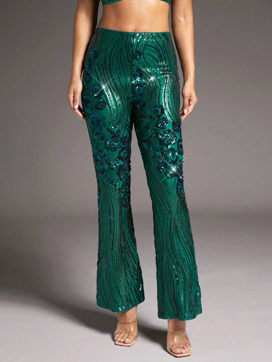 SHEIN BAE Christmas Sparkle Bell Bottom Pants
