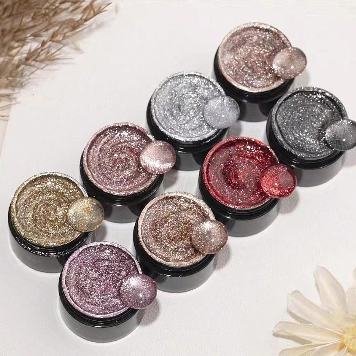 Chrome Platinum Glitter Nail Polish Set Of 8 Colors Including Sparkly Shiny UV LED Soak Off Black Silver Pink Gel Polish Kit Home DIY Manicure Nail Salon Varnish