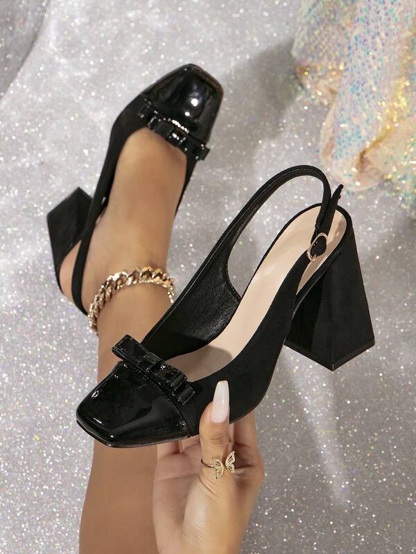 Chunky Heel High Heels For Women Spring & Autumn 2024 New Hollow Out Bow-Knot Pumps All-Match Shoes With Elegant Temperament