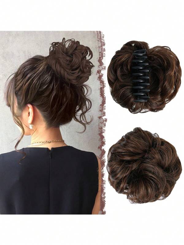 Claw Clip In Bun Hair Piece Tousled Updo Hairpiece For Women Wavy Curly Scrunchies Claw Clip In Hair Bun Synthetic Chignon Claw Clip With Hair Attached