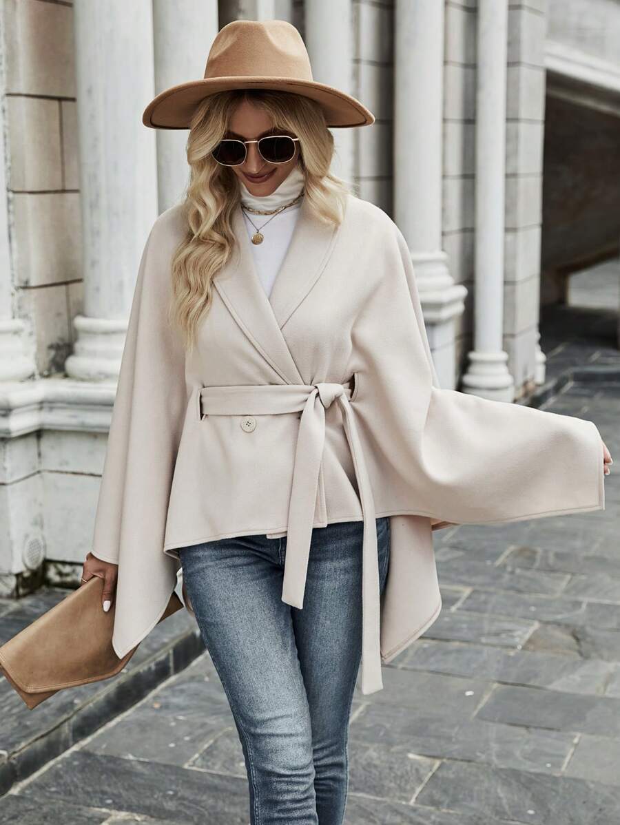 SHEIN Frenchy Cloak Sleeve Belted Overcoat