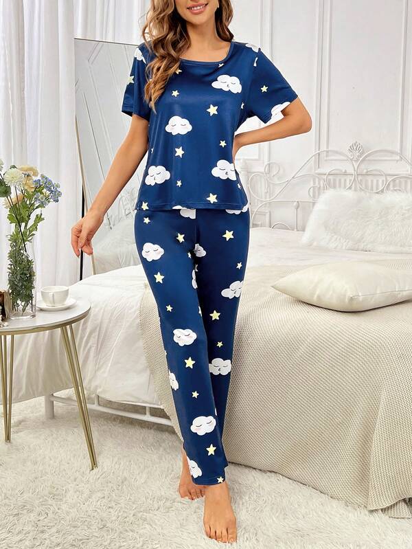 Cloud & Star Print PJ Set