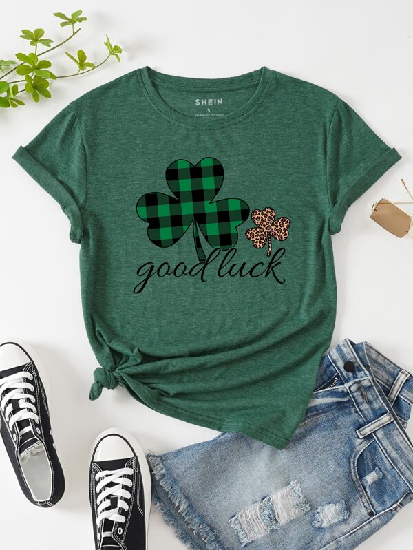 SHEIN LUNE Clover And Slogan Graphic Tee