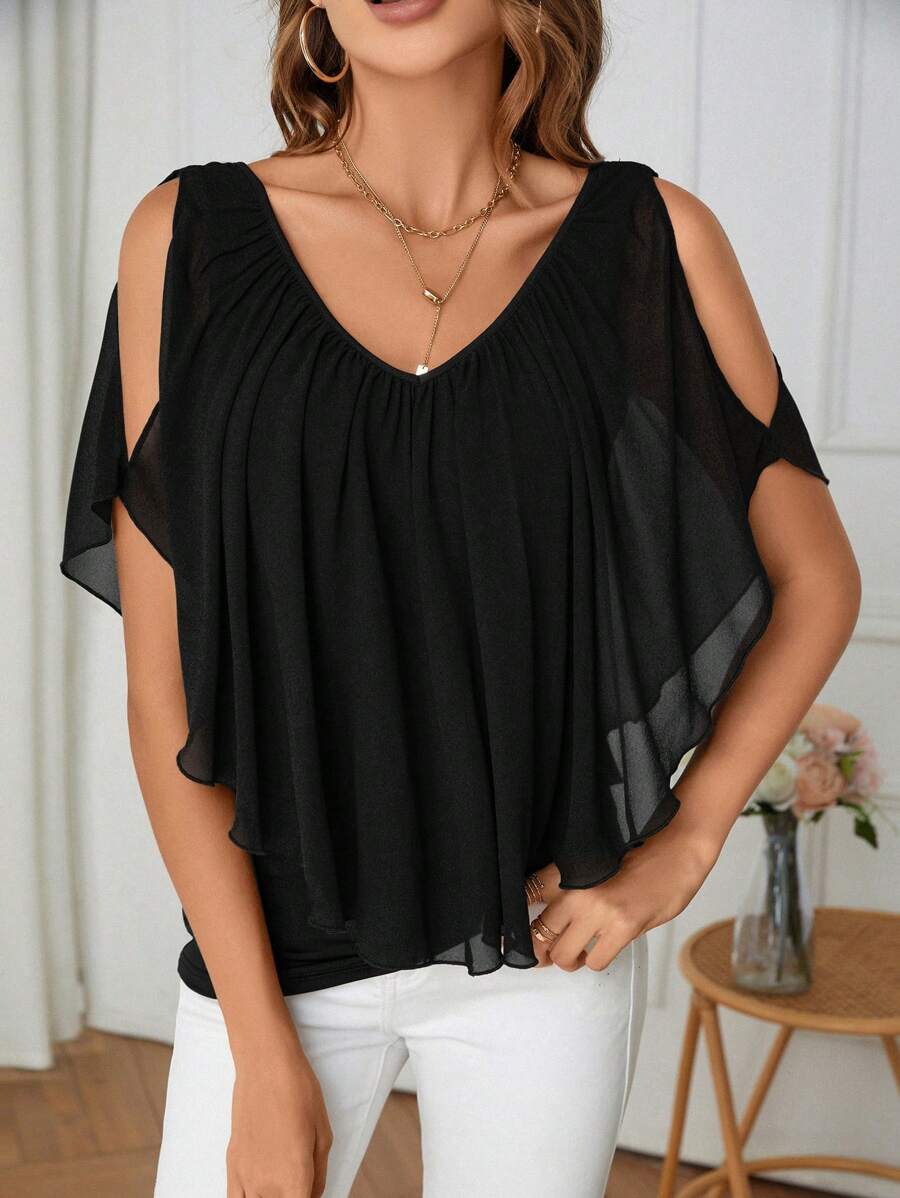 SHEIN Clasi Cold Shoulder Batwing Sleeve Tee