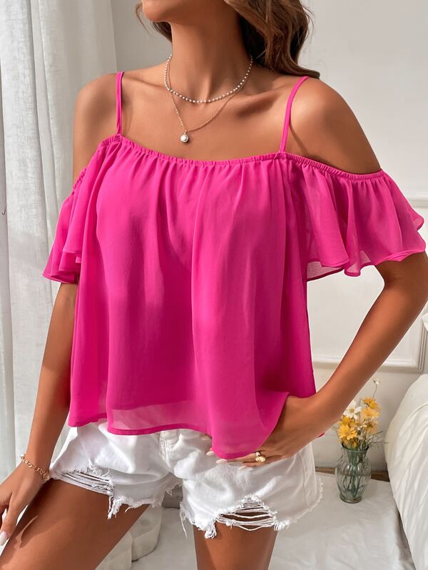 SHEIN VCAY Cold Shoulder Solid Blouse