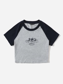 SHEIN Qutie Color Block Angel Print Tee