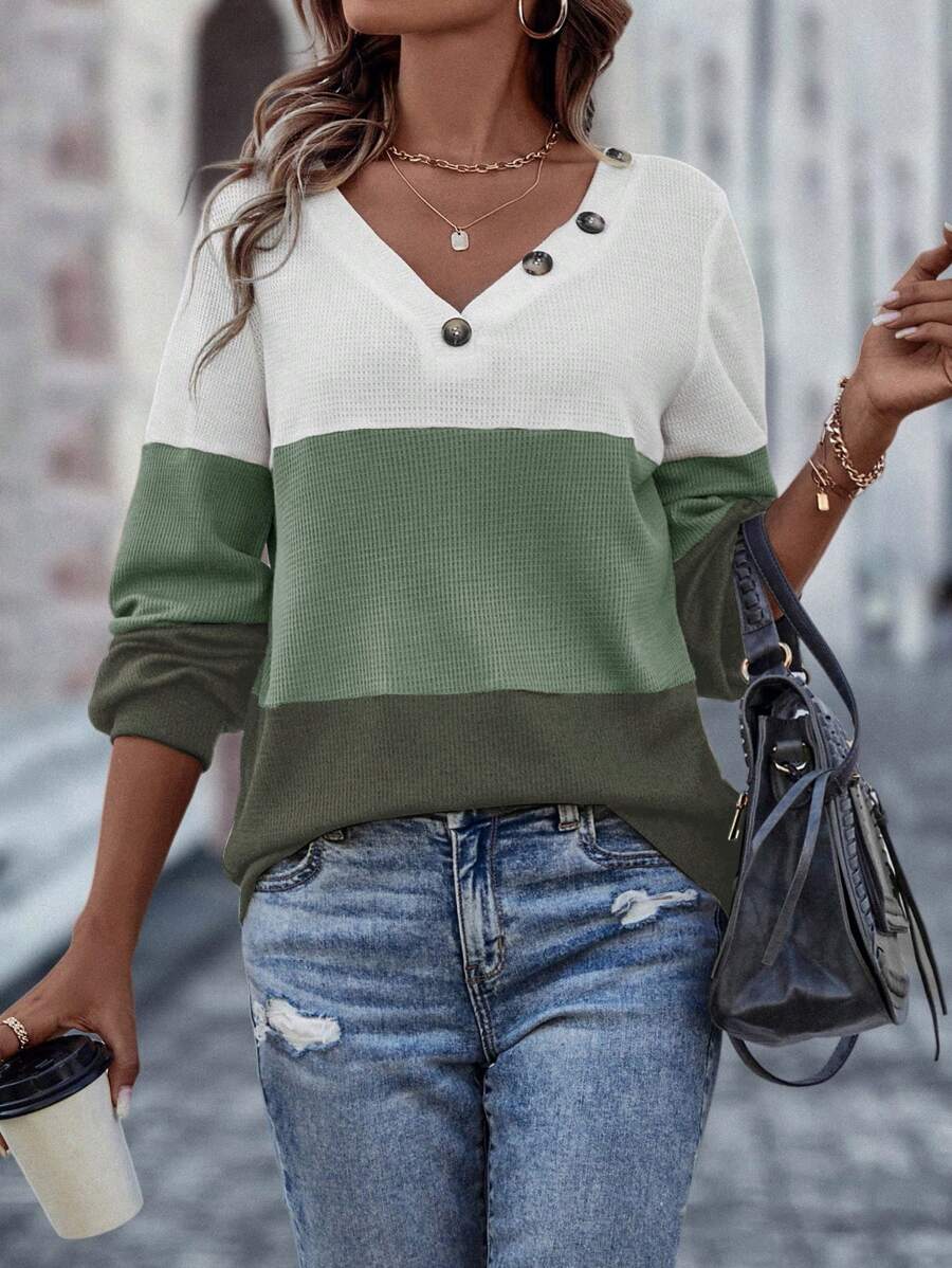 SHEIN LUNE Color Block Button Detail Sweatshirt