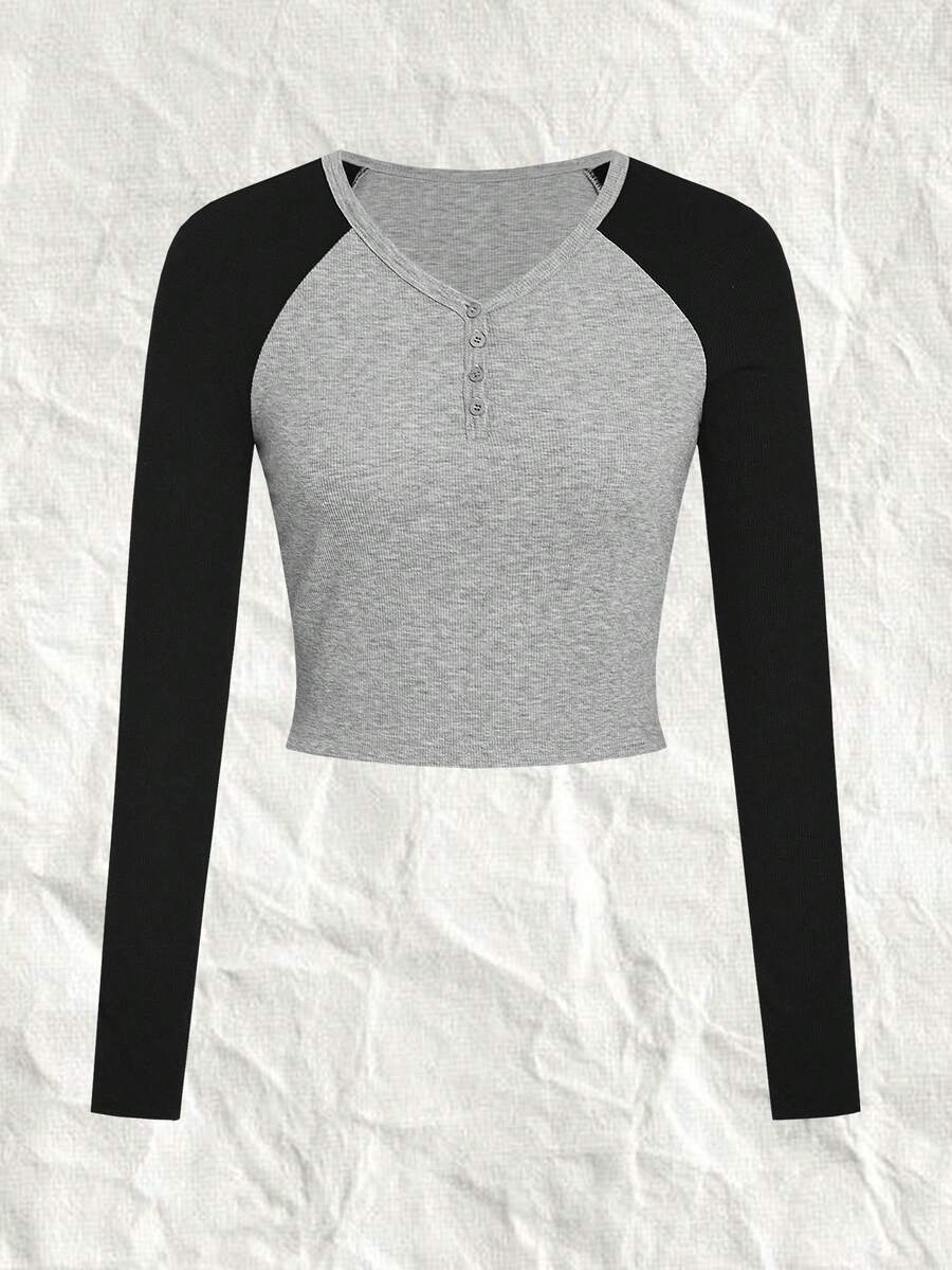 SHEIN EZwear Color Block Knitted Slim Fit T-shirt For Women