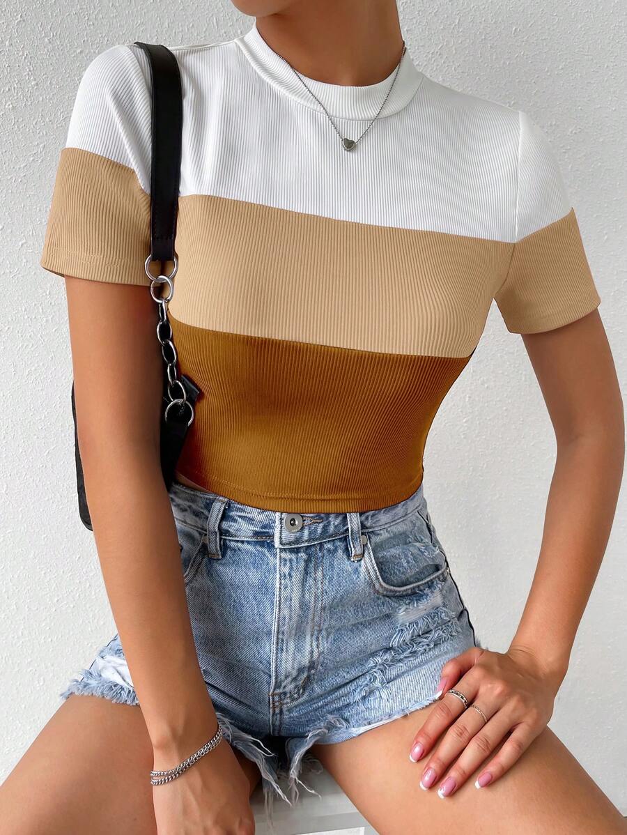 SHEIN EZwear Color Block Mock Neck Tee