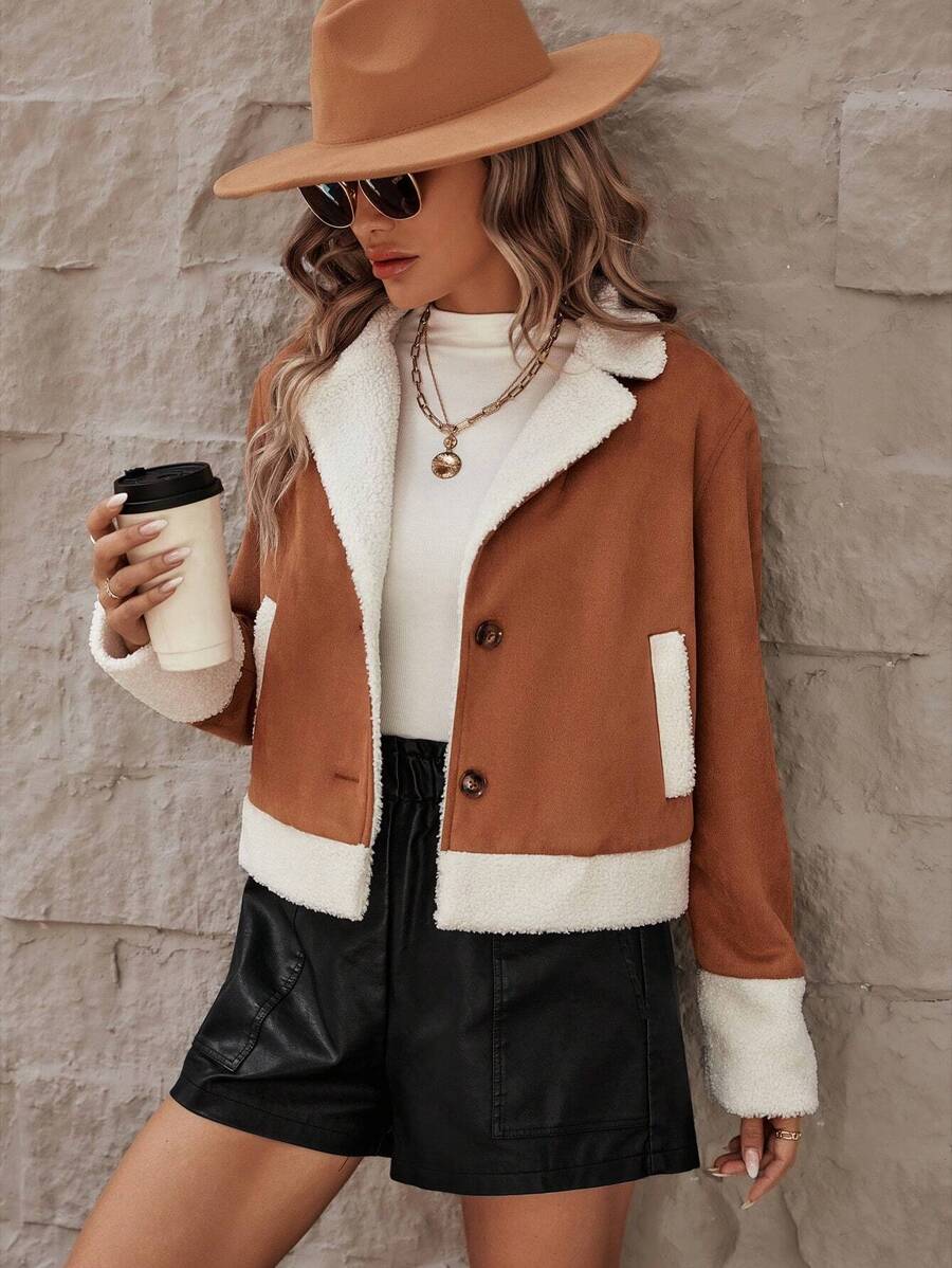 SHEIN LUNE Color Block Teddy Lined Jacket
