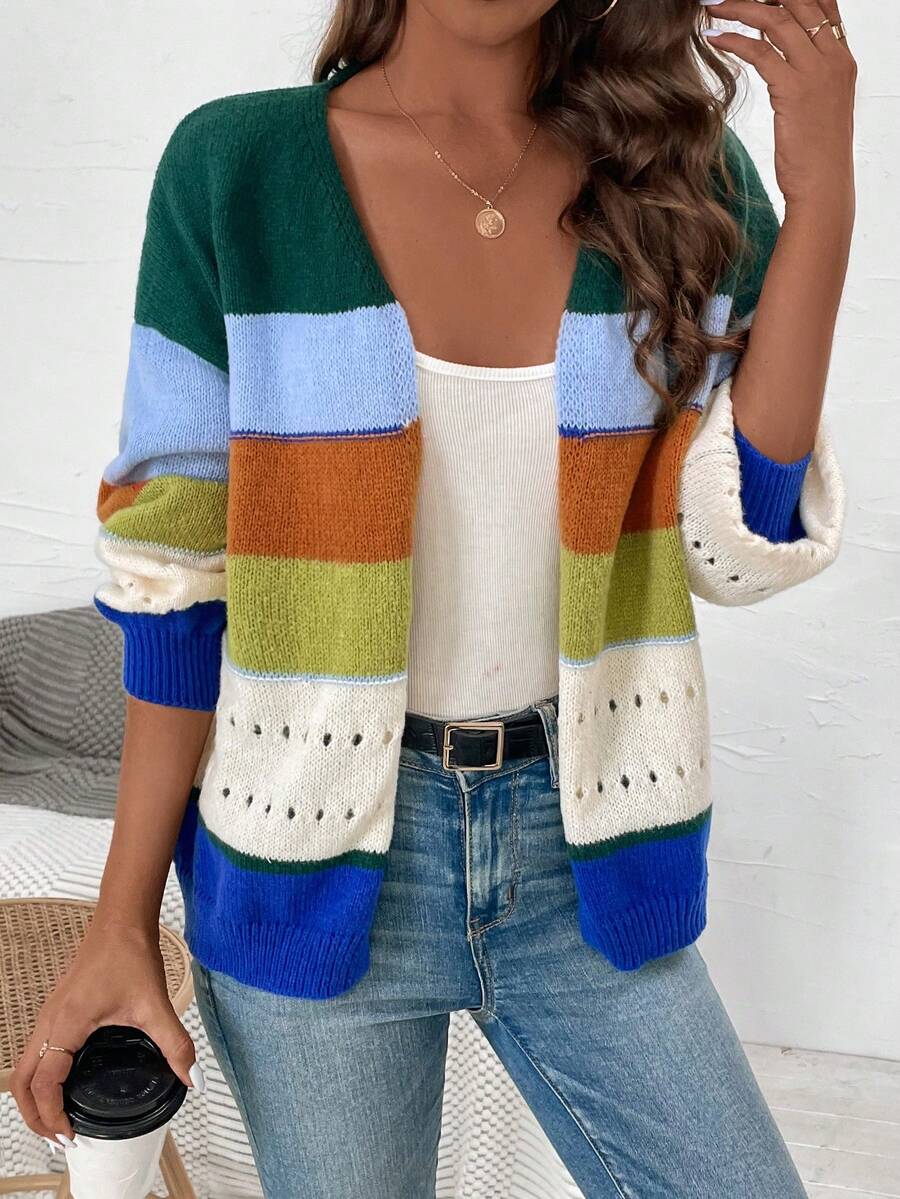 SHEIN LUNE Color Blocking Cardigan (open Front)