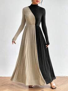 SHEIN Privé Color Blocking Pleated Slit Women's Dress