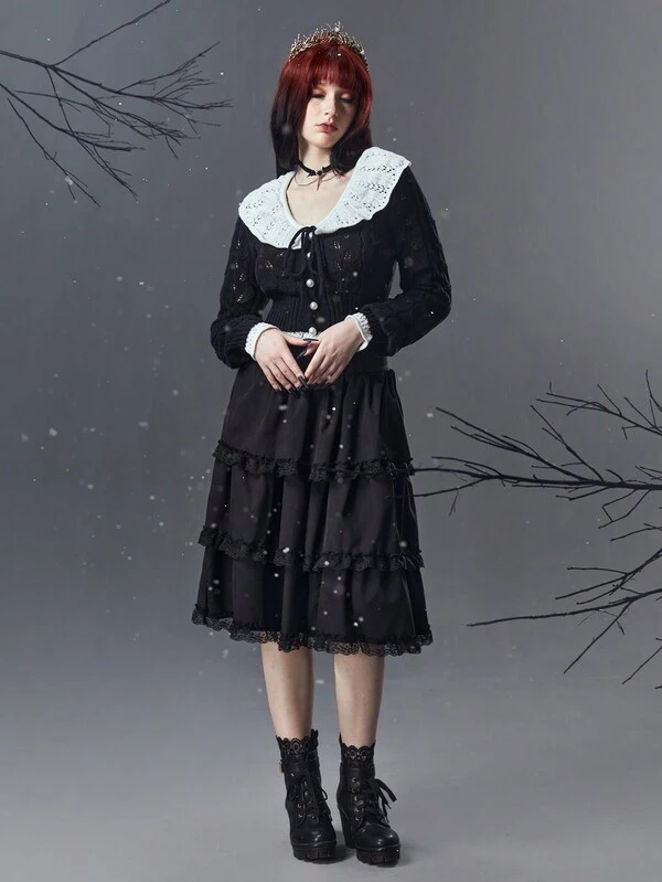ROMWE Goth Color-block Patchwork Lapel Cardigan