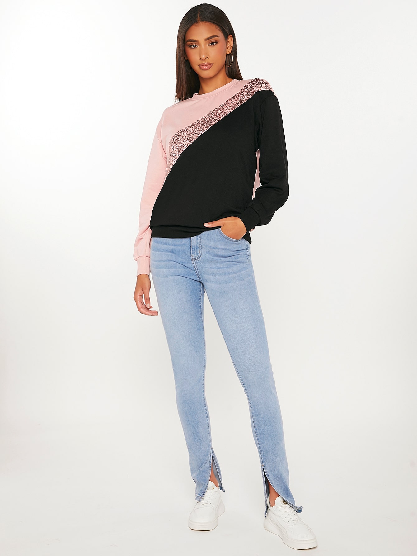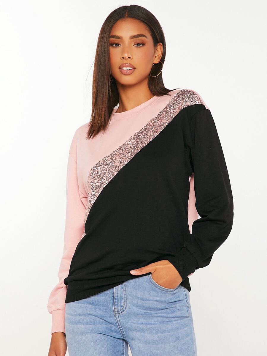 SHEIN Tall Colorblock Contrast Sequin Drop Shoulder Sweatshirt