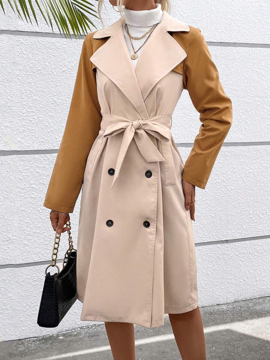 SHEIN Frenchy Colorblock Double Breasted Belted Trench Coat