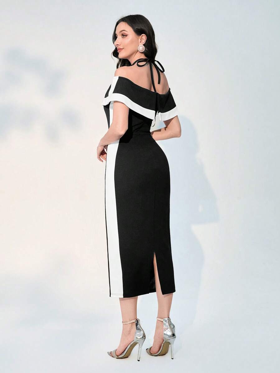 SHEIN Modely Colorblock Halter Neck Bodycon Dress