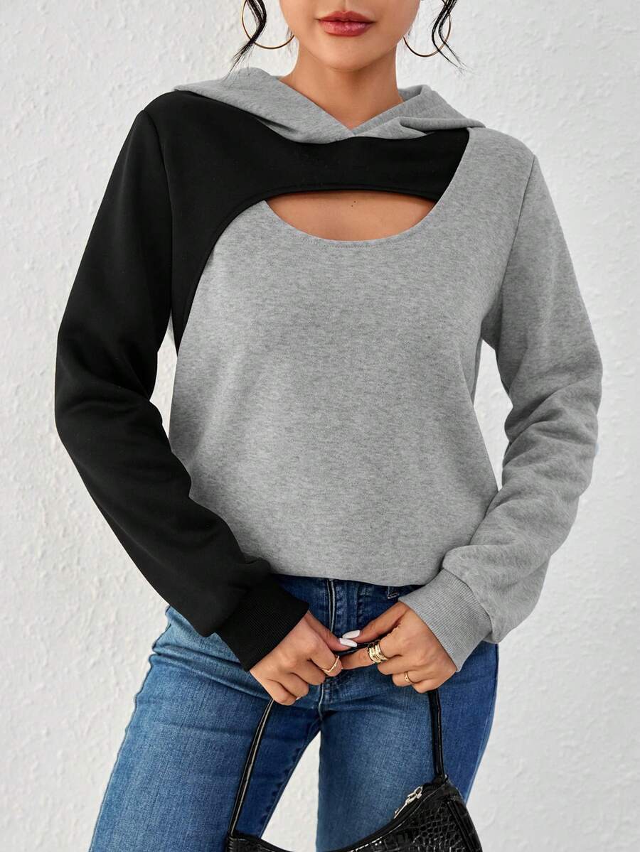 SHEIN Essnce Colorblock Hollow Out Hooded Long Sleeve Sweatshirt
