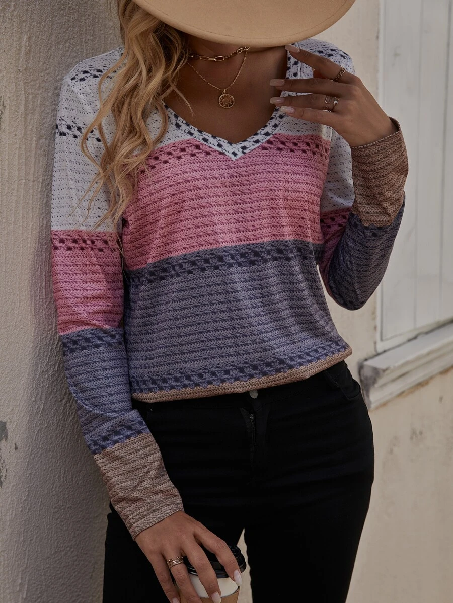 SHEIN LUNE Colorblock V Neck Tee