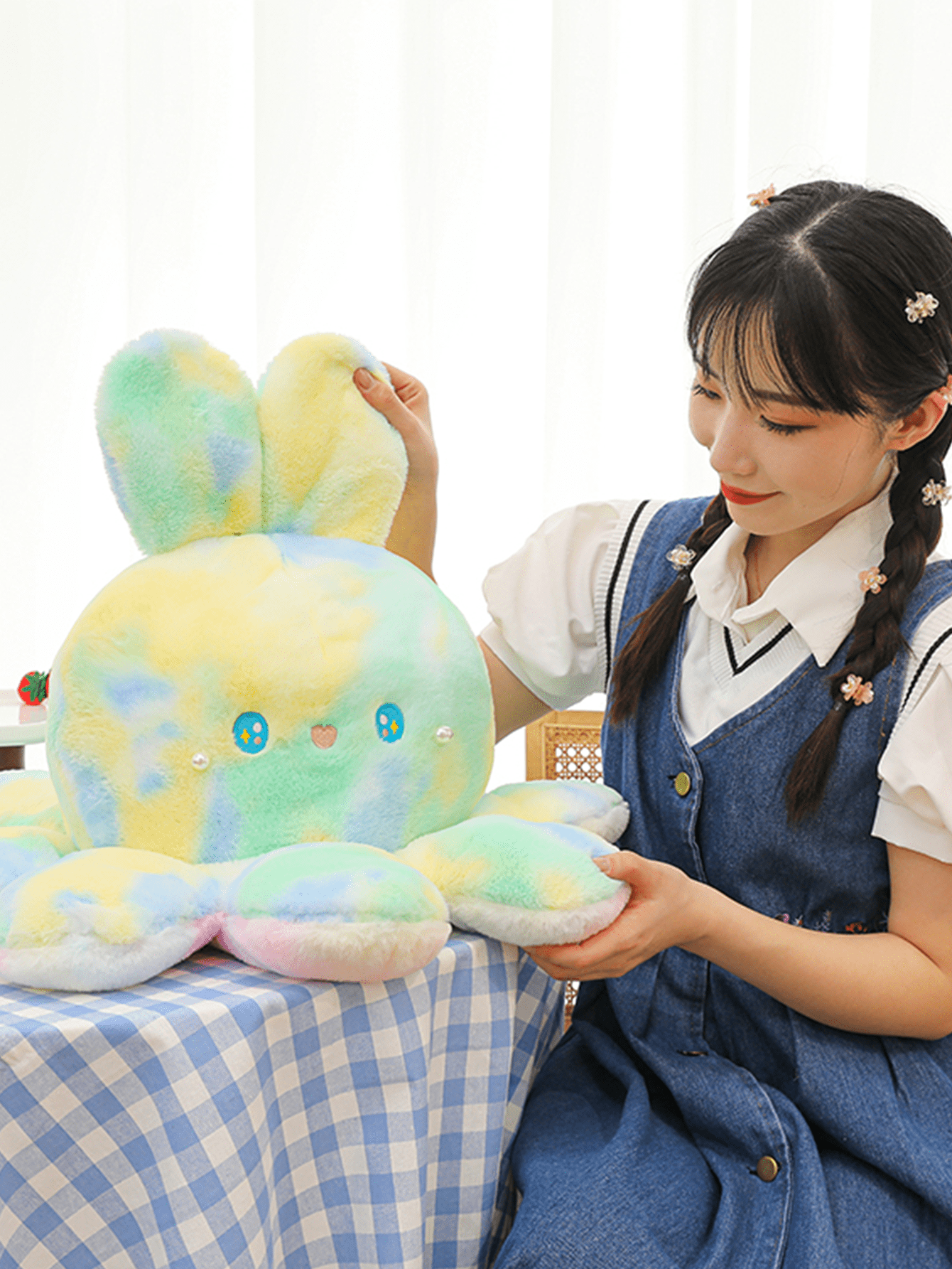 Colorful Octopus Rabbit Stuffed Toy, Reversible Plush Octopus Doll, Home Decor & Gift