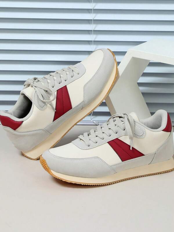 Comfortable, Simple And Fashionable Outdoor Walking And Casual Shoes, City-Style Lace-Up Design, Suitable For Commuting, Fitness And Travel. Round-Toe, Low-Cut, Color-Block Design, Versatile, Suitable For Holiday Gifts, Men'S Sports Shoes.