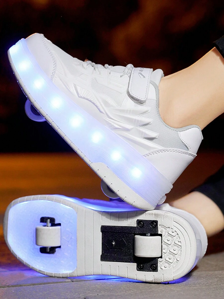 Comfortable Stylish Breathable Double Wheel Charging Led Light Up Sneakers For Kids