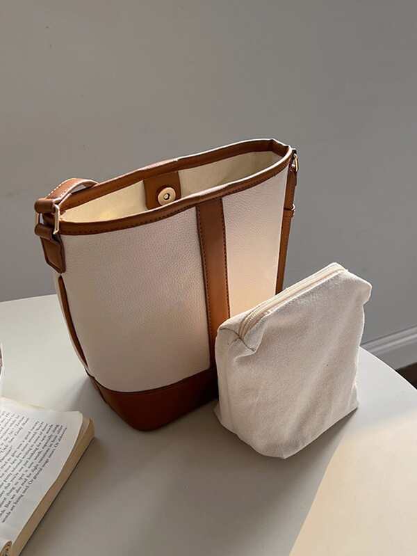 Contrast Binding Bucket Bag With Inner Pouch