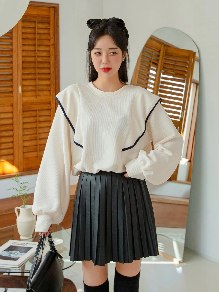 FRIFUL Contrast Binding Drop Shoulder Sweatshirt