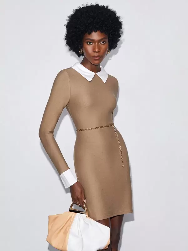 SHEIN BIZwear Contrast Collar Button Detail Dress Without Belt