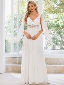 EVER-PRETTY Contrast Embroidery Mesh Cloak Sleeve Chiffon Wedding Dress