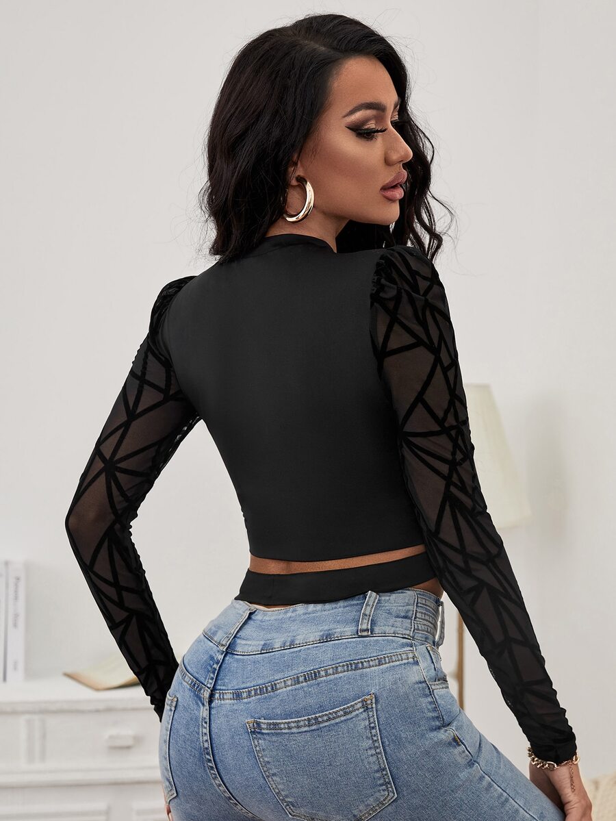 SHEIN SXY Contrast Geo Mesh Cut Out Crop Tee
