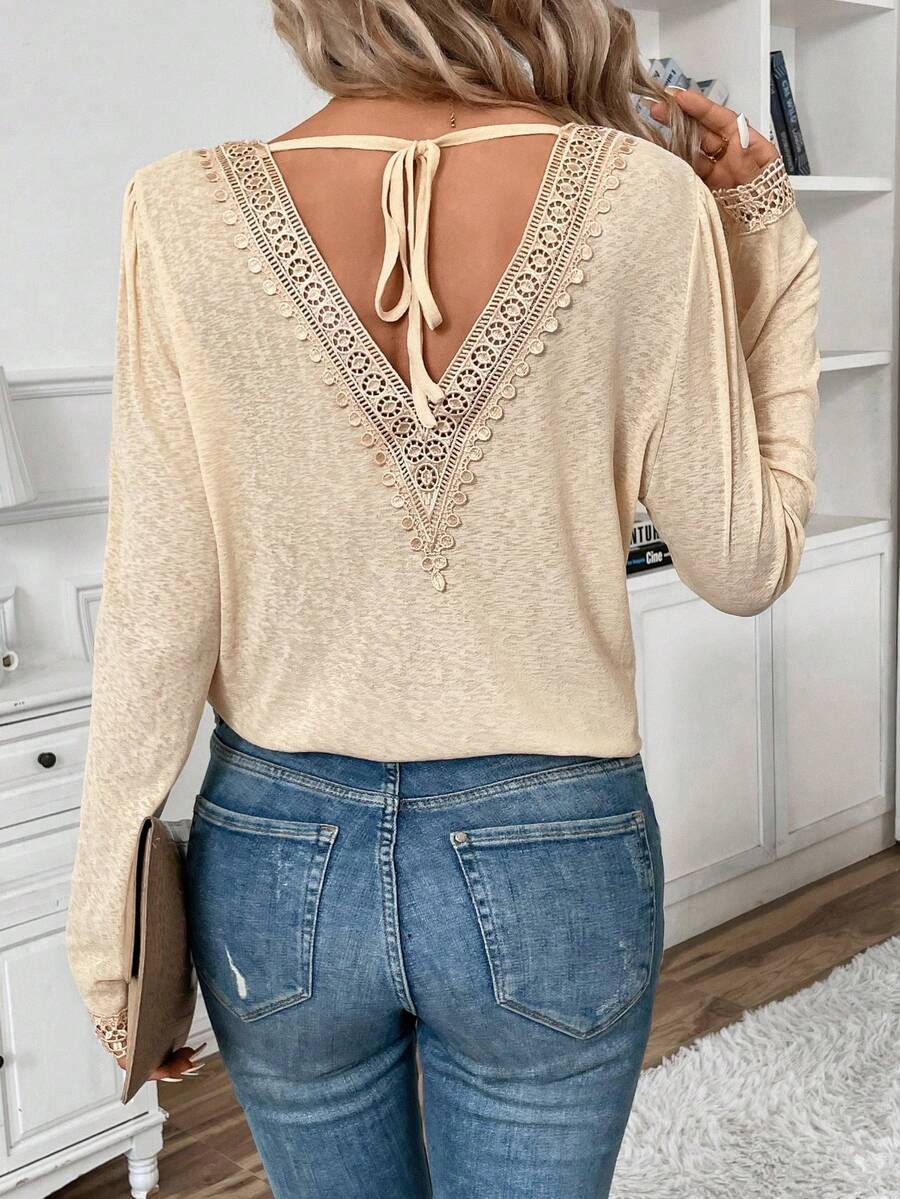 SHEIN Frenchy Contrast Guipure Lace Tie Back Tee