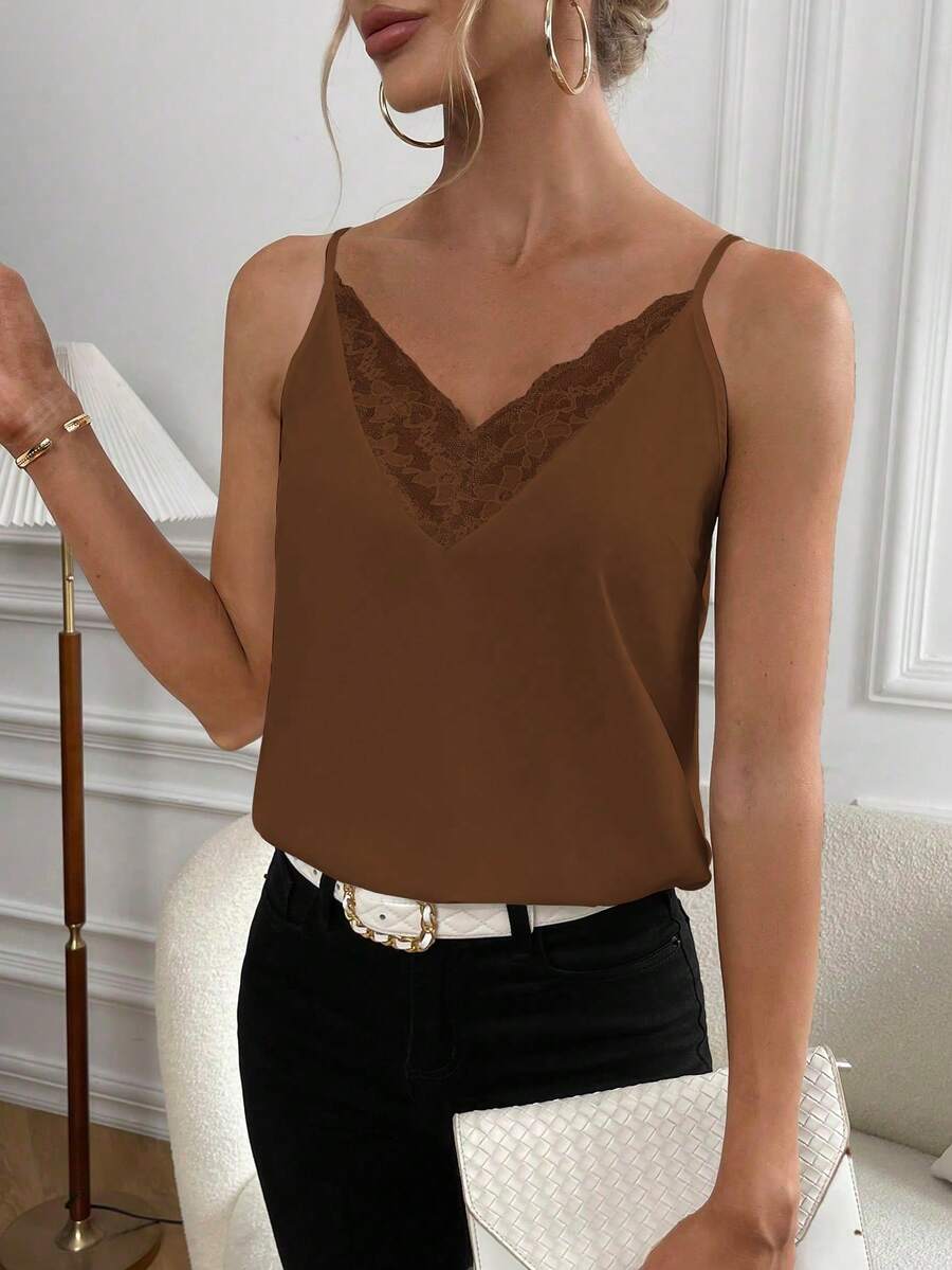 SHEIN Privé Contrast Lace Cami Top