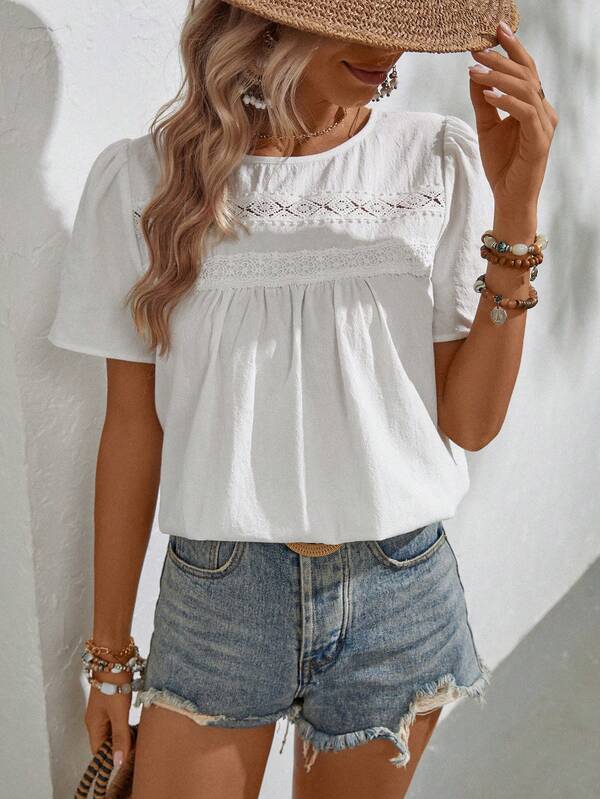 SHEIN LUNE Contrast Lace Keyhole Back Blouse