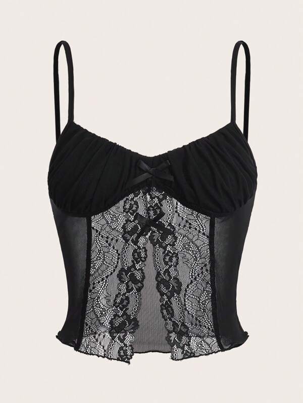 SHEIN ICON Contrast Lace Ruched Bust Cami Top