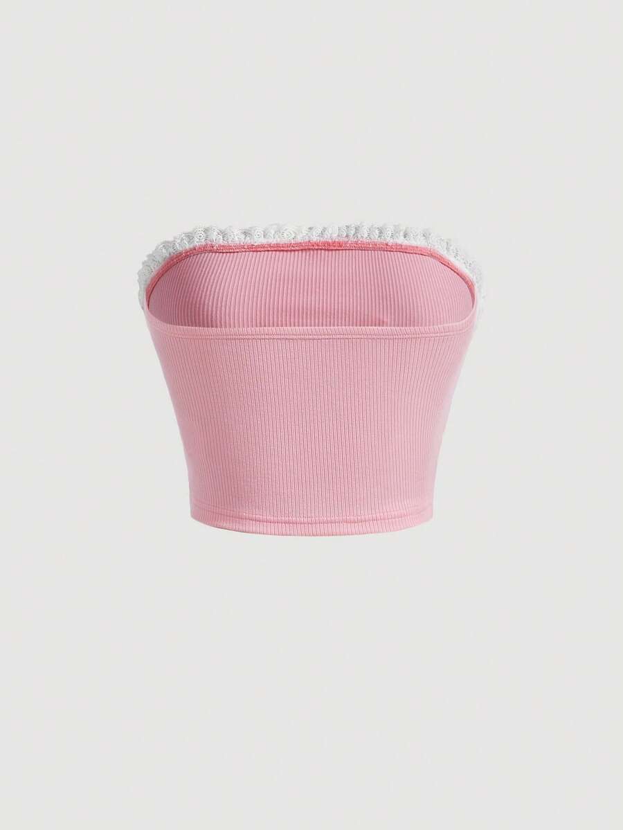 SHEIN MOD Contrast Lace Tie Front Tube Top