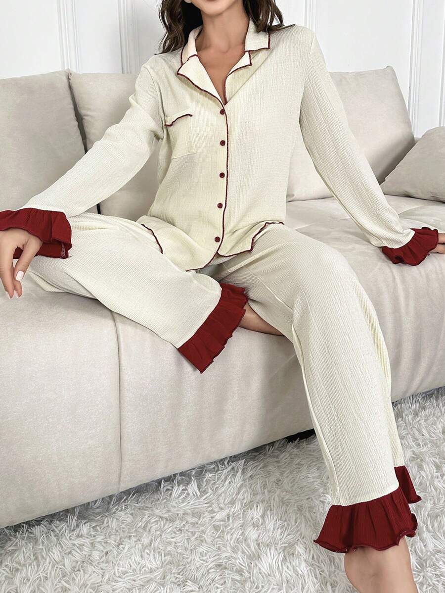 Contrast Ruffle Trim Lounge Set