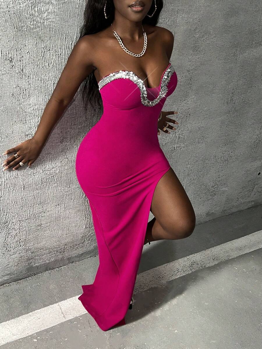 SHEIN Slayr Contrast Sequin Asymmetrical Hem Tube Dress