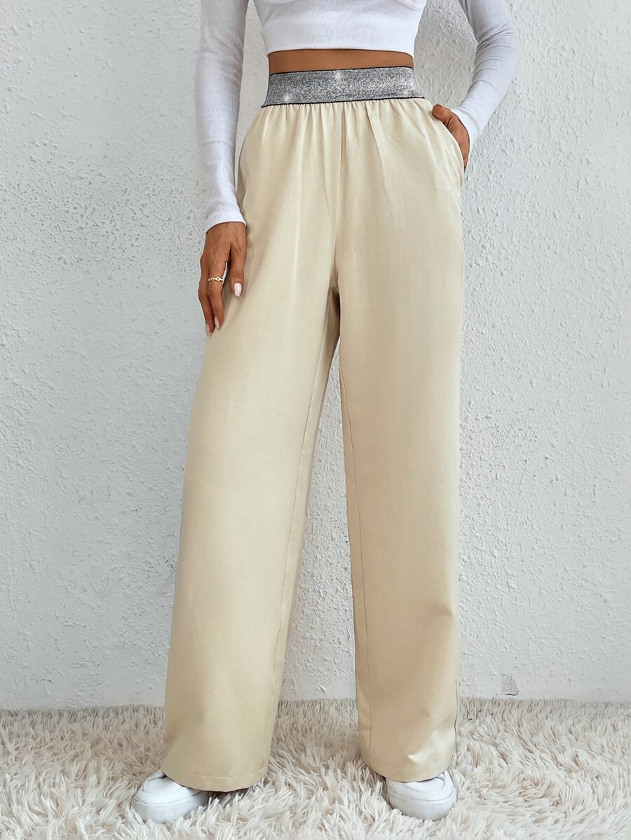 SHEIN Unity Contrast Tape Slant Pockets Wide Leg Pants