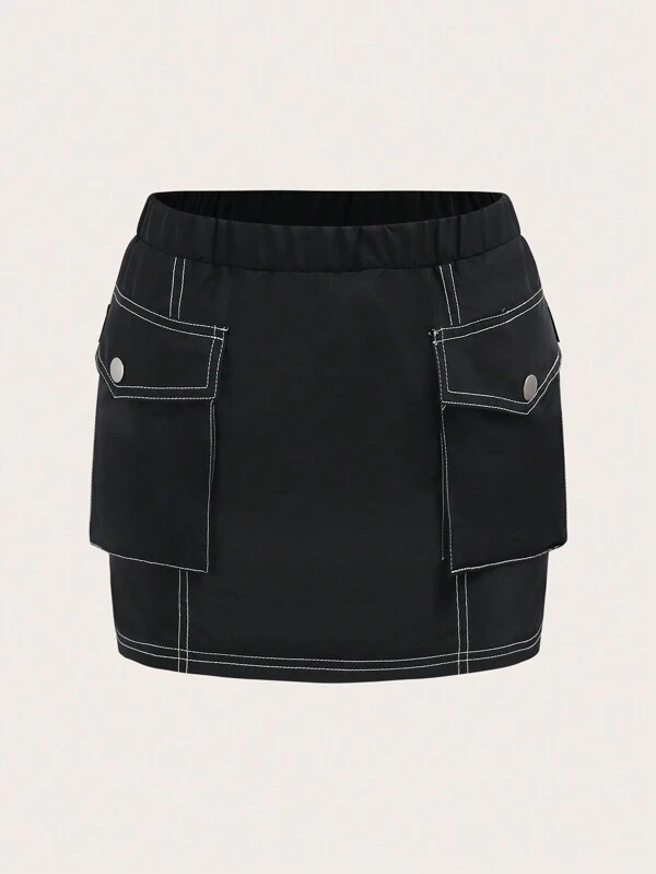 SHEIN ICON Contrast Top-stitching Flap Pocket Cargo Skirt