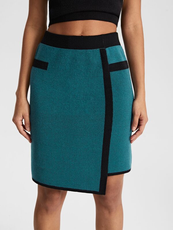 R2KHOUSE Contrast Trim Asymmetrical Hem Knit Skirt