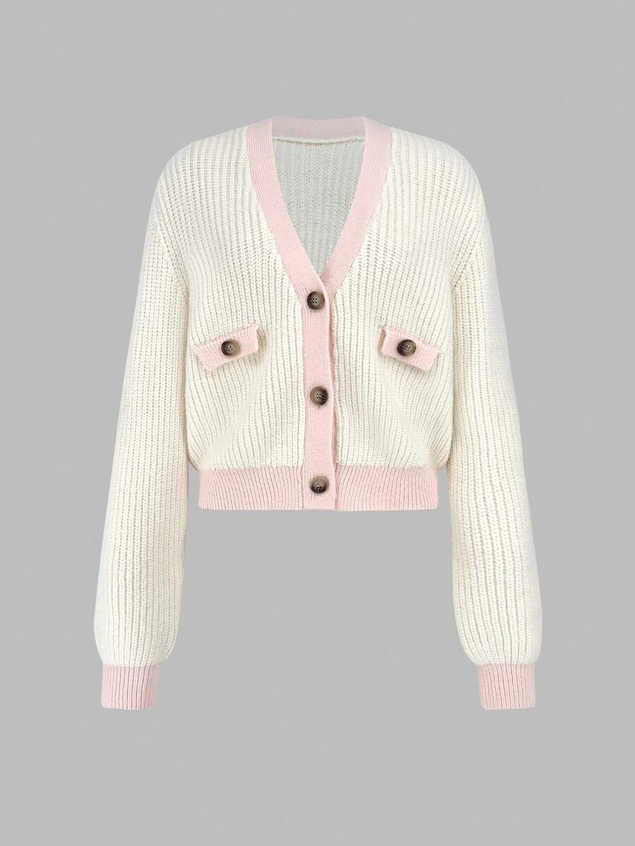 SHEIN Qutie Contrast Trim Button Front Cardigan