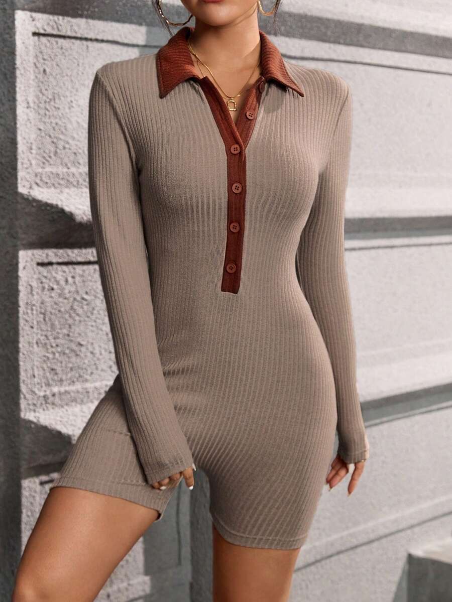 SHEIN Essnce Contrast Trim Button Front Unitard Romper