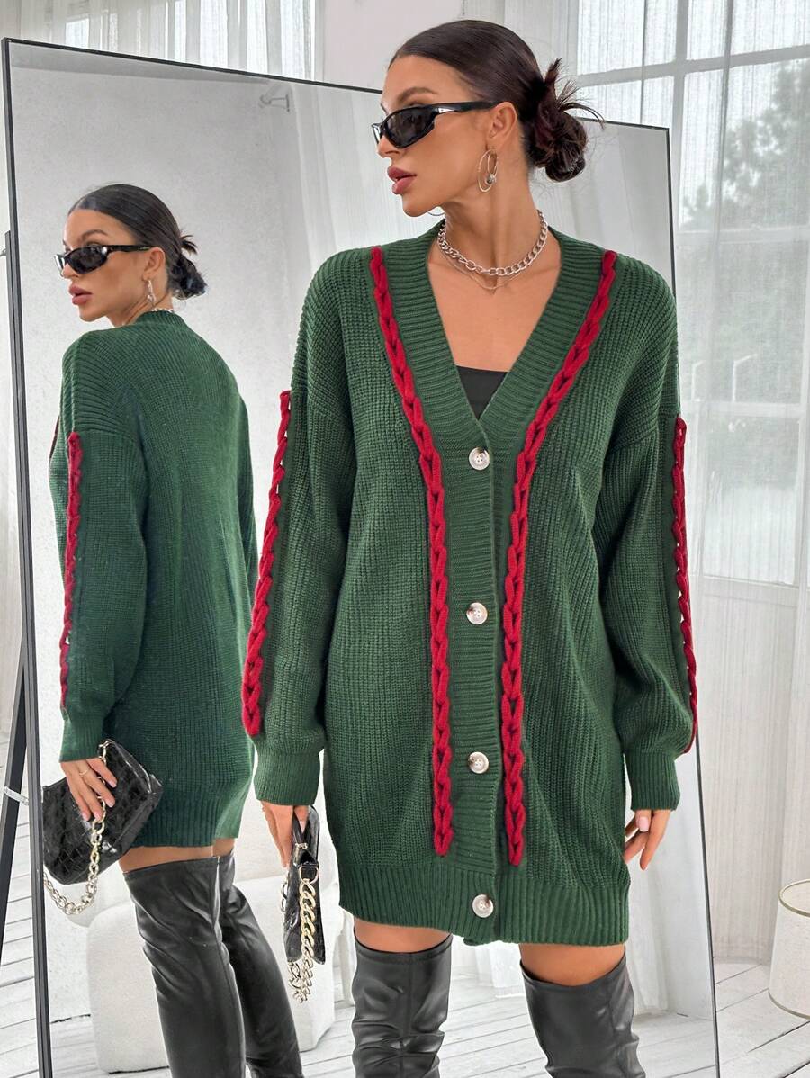 SHEIN Essnce Contrast Trim Drop Shoulder Open Front Cardigan