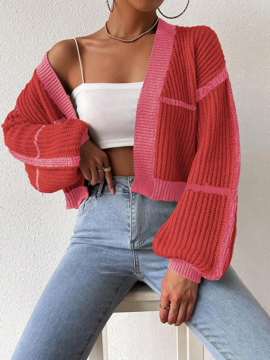 Contrast Trim Lantern Sleeve Duster Cardigan