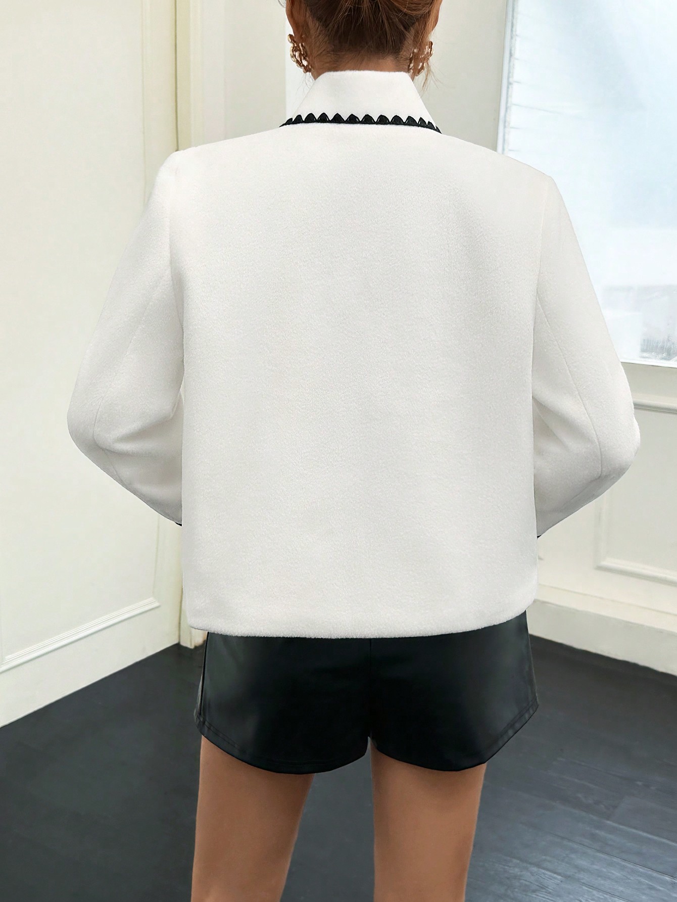 SHEIN Privé Contrast Trim Pocket Patched Button Front Overcoat