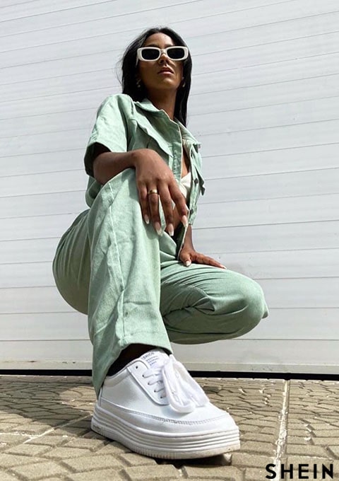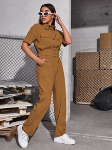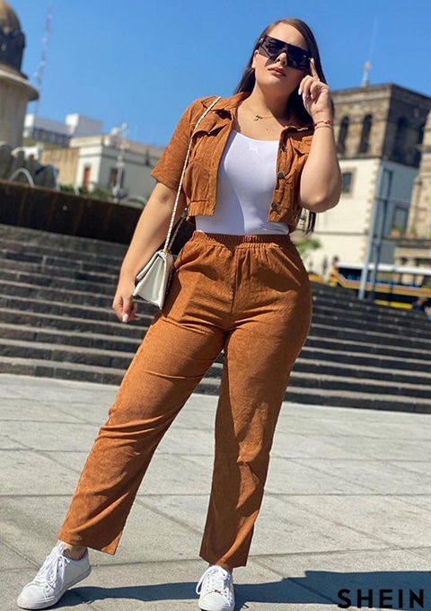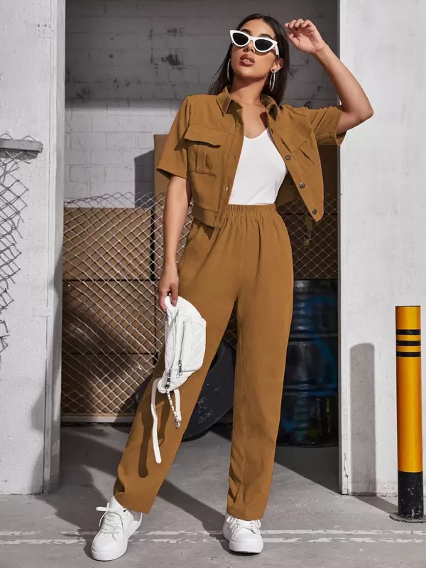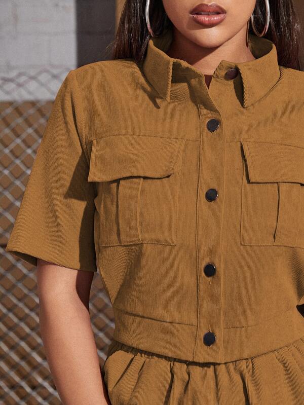 SHEIN Mulvari Corduroy Flap Pocket Blouse & Pants