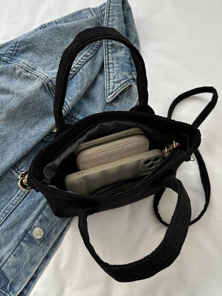 Corduroy Simple Classic Handbag, Shoulder Bag, Crossbody Bag, Fashionable Small Bag, Suitable For Star, Women, Couples' Travelling, Working, Weekend And Holiday Tourism