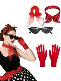 This 5-Piece Set, Suitable For Women In Their 20s, 40s, 50s, And 70s, Includes A 1950s Retro Solid Color Scarf, Cat-Eye Glasses, A Polka Dot Headband, And Gloves. It's Perfect For 1950s-Themed Solid Color Parties, Halloween Cosplay, Costume Parties, Everyday Wear, Themed Parties, And Valentine's Day Women's Party Accessories. #5 Bestseller