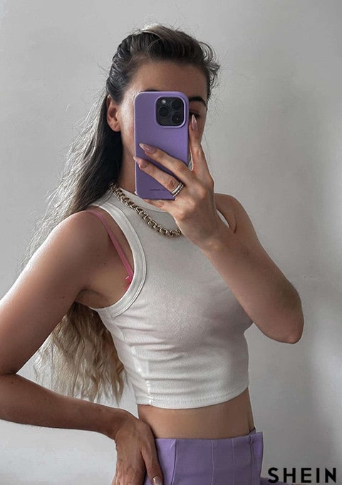 SHEIN BASICS Cotton Solid Crop Tank Top